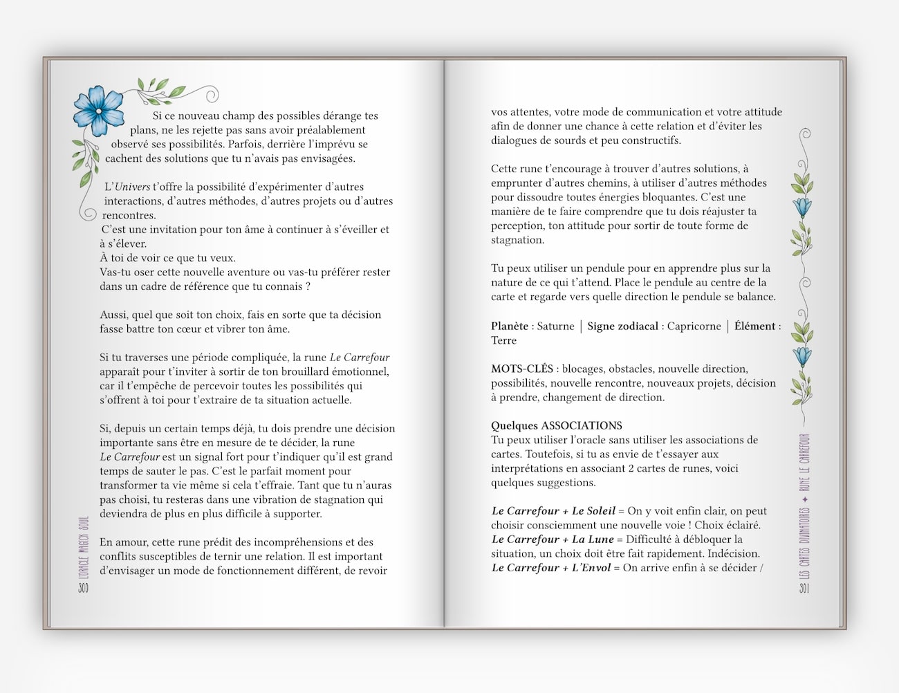En complément de cette exploration intérieure, l’Oracle Magick Soul t’invite également à explorer les énergies qui entrent dans ta vie. Avec la sagesse des runes divinatoires des Magiciens et des Sorcières, et des cartes spéciales, tu seras guidé dans tes expériences de vie. Ainsi tu auras un aperçu global de ta situation et comment l’améliorer.
