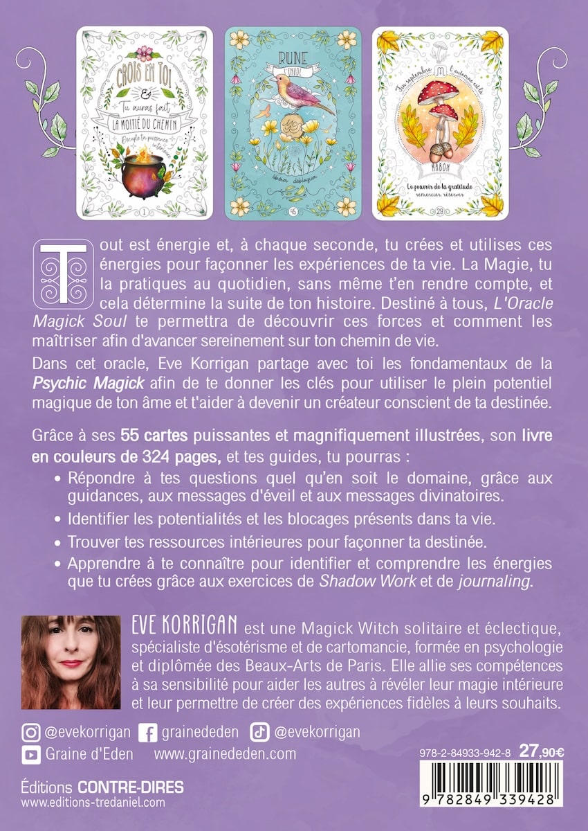Tout est énergie, et à chaque seconde, tu crées et tu utilises ces énergies pour façonner les expériences que tu vis. Destiné à tous, l’Oracle Magick Soul te permettra de découvrir ces énergies et comment les maîtriser afin d’avancer sereinement sur ton chemin de vie.